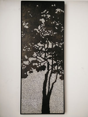 Through my paintings, I like to play with the lacquer and eggshells details to express the differents phases of the lunar cycle.