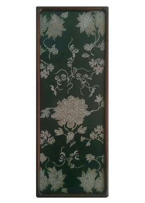 I made my black backgrounds with white acrylic paint mixed with Chinese ink. I get a mat background that bring out the satin finish and smooth touch of the lacquer.