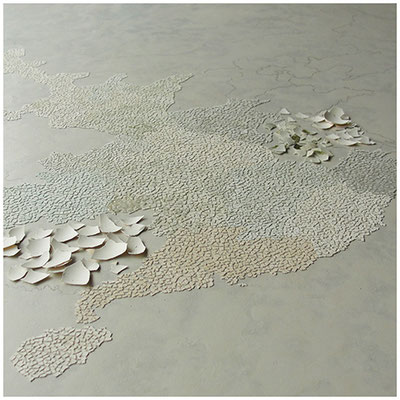 To conceive a lecture of this country, eggshell was for me the perfect material in order to work on details and accuracy and therefore accentuate the point of view that I want to share.