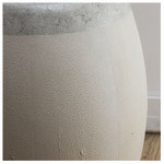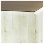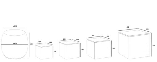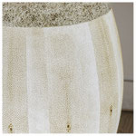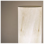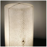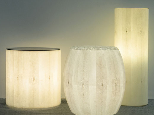 Meubles lumineux en polyethylene recouverts d’empreintes de peaux de Galuchat. Finition vernis satiné.