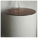 Plateaux en laiton doré épaisseur 2 mm ou plateaux réalisés en coquilles d’œuf serties d'un fil de laiton ou plateaux en miroir teinté bronze épaisseur 5 mm.